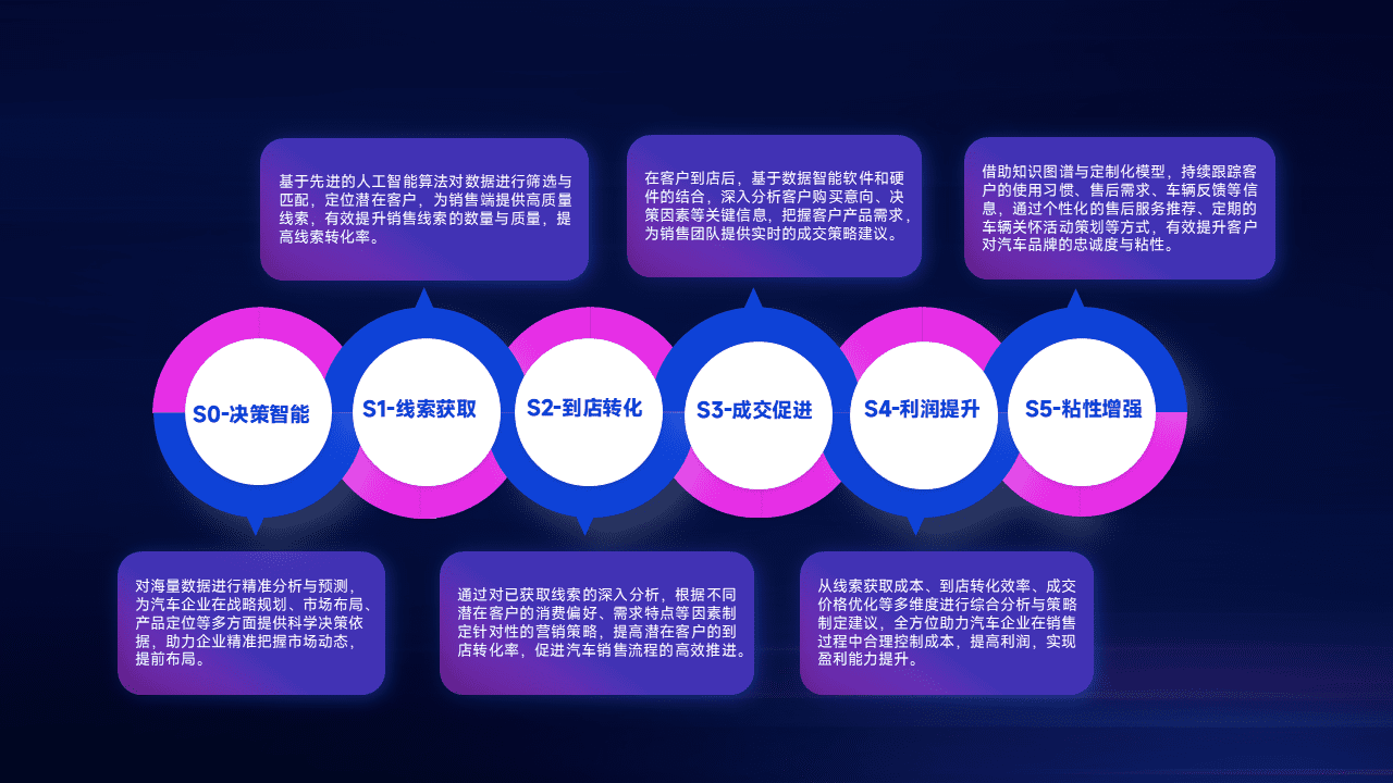 通过拓宽潜在客户来源、、、优化线索分配并提高到店转化率,,,以增强销售效率。。。同时,,,利用线索数据不断优化分析模型,,有效提升转化率,,,,扩大营销影响力。。。